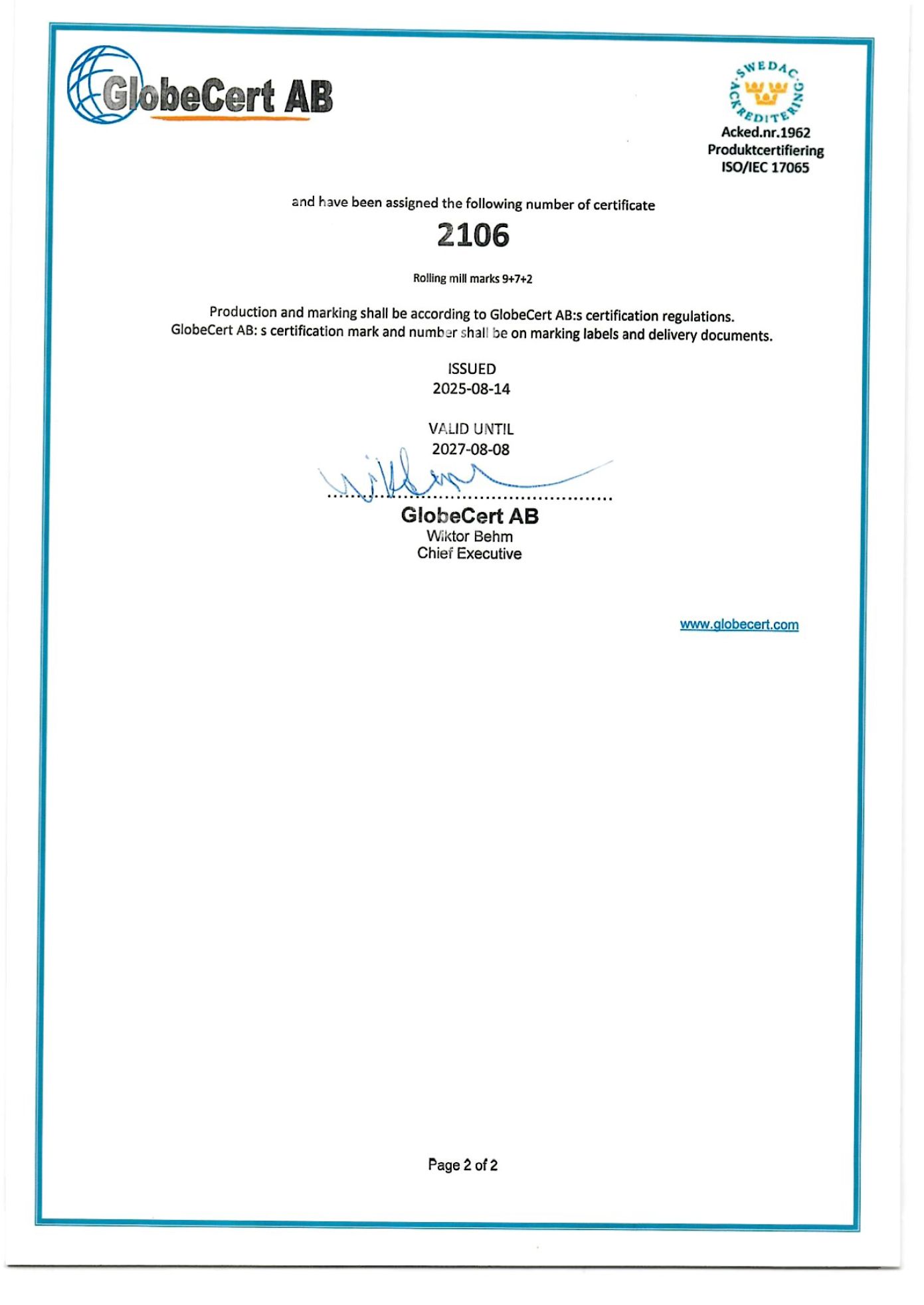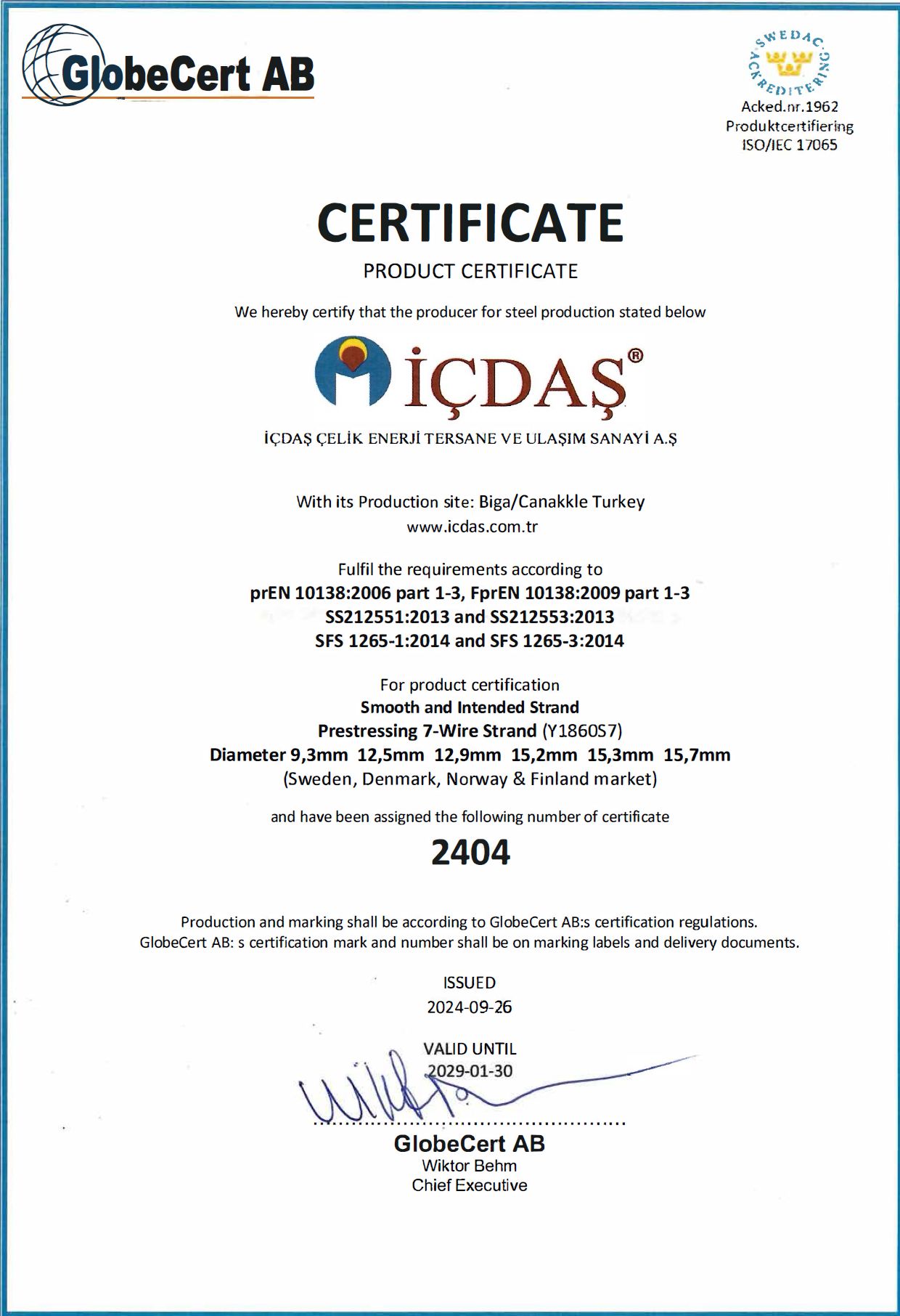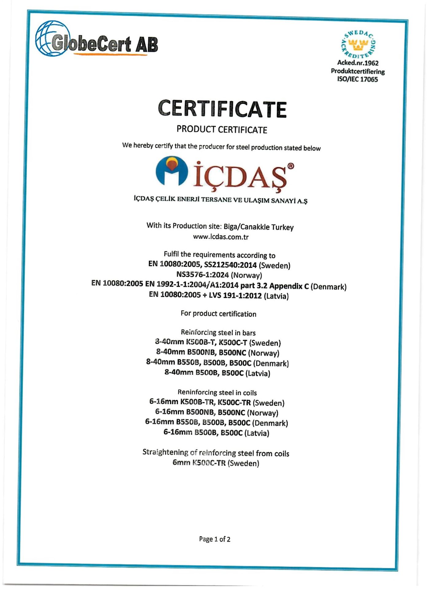 Nordic Countries Product Certificates (Click on Thumbnails to View Larger)