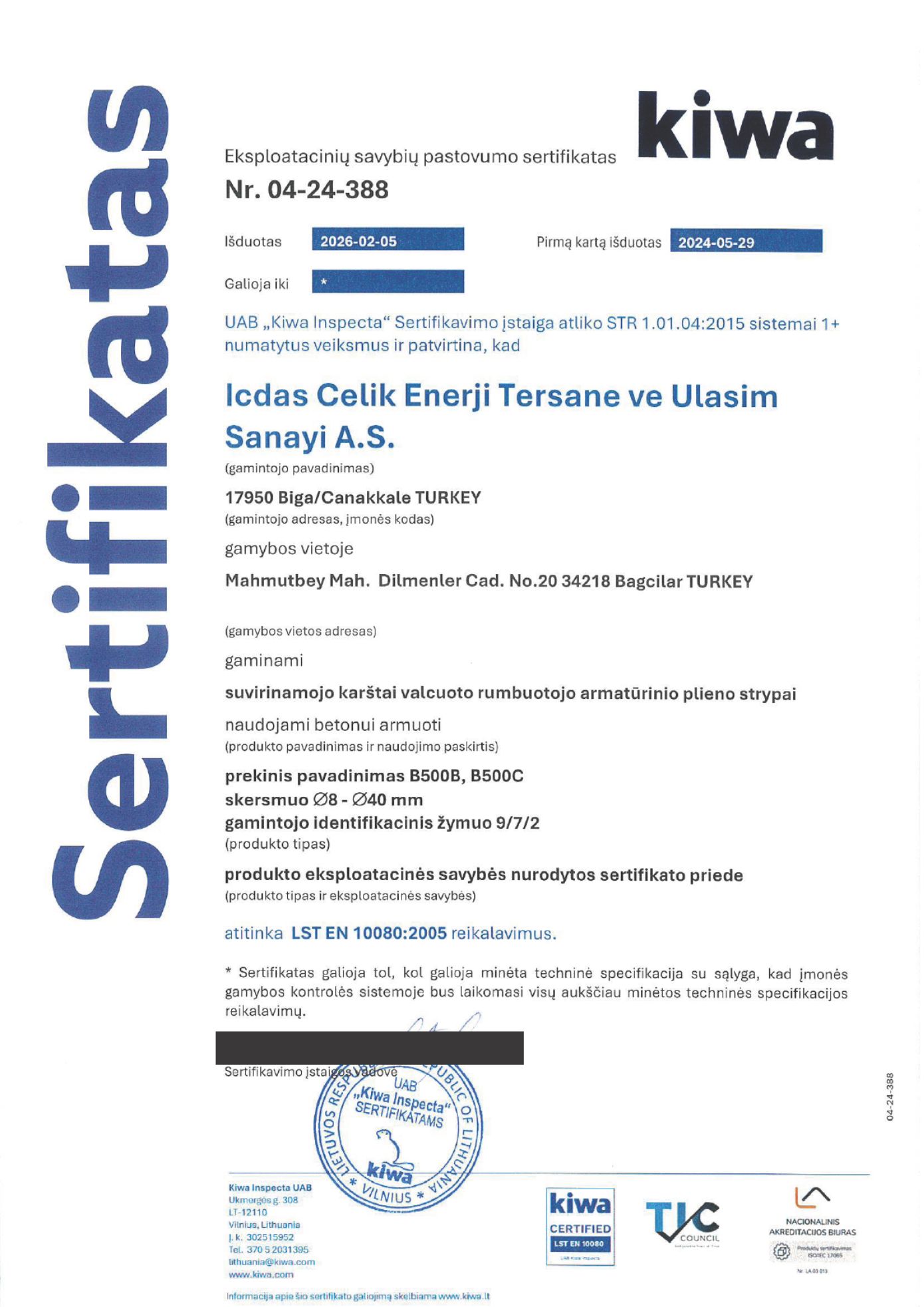 Lithuania Product Certificates (Click on Thumbnail to View Larger)